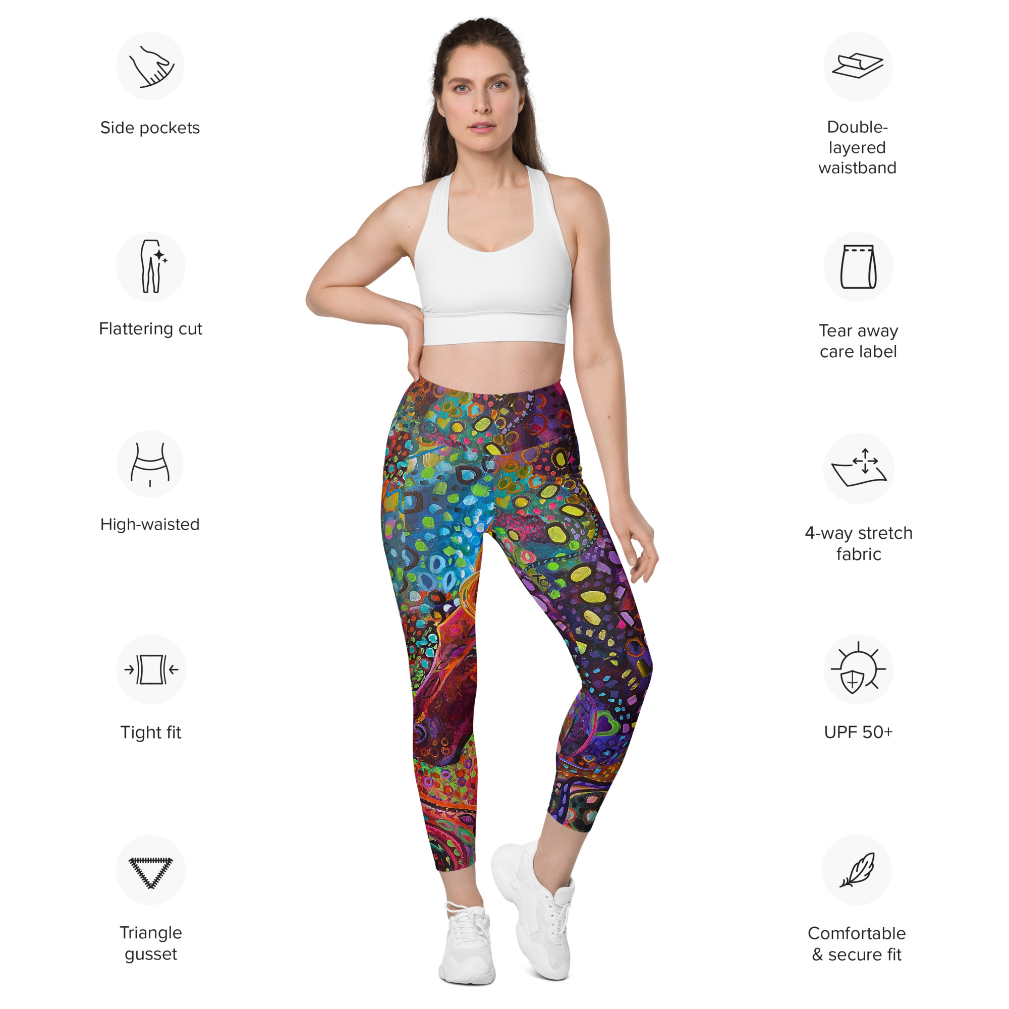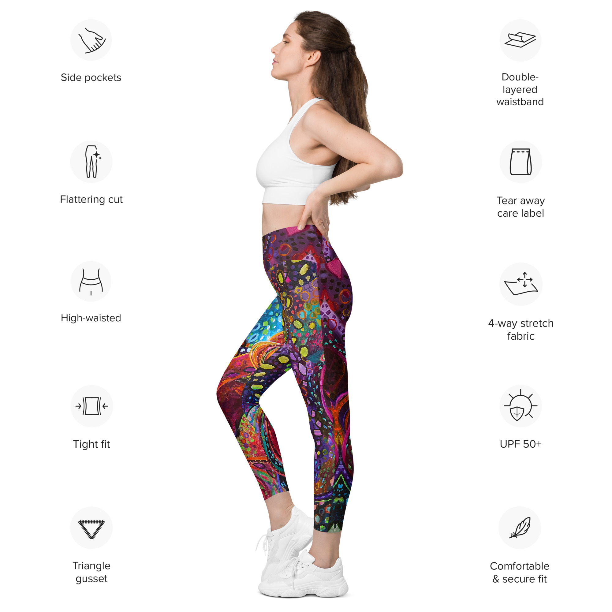 Meet your new favorite pair of pocket leggings. Featuring a classic, high-waisted cut, exceptional comfort, and two practical side pockets, these semi-compression leggings will support you during workouts and casual strolls around the city. Get yours now!