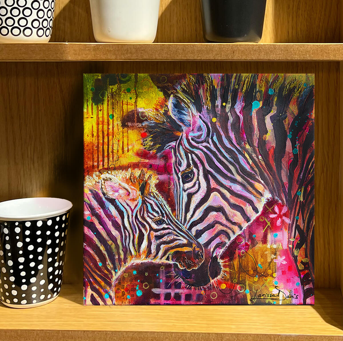– Original Oil & Mixed Media Zebra Painting, Symbolic Art of Love and Freedom