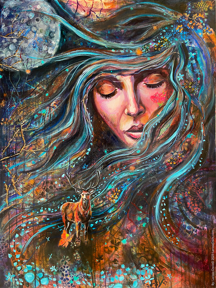 Abstract Oil and Mixed Media Feminine Portrait, Spiritual Art of Renewal. A powerful exploration of inner transformation, capturing the turbulence, release, and awakening that arise when we confront and dissolve outdated stories. Tempest is ideal for those called to themes of resilience, spiritual awakening, archetypal symbolism, and the gifts found in navigating life’s pivotal turning points.