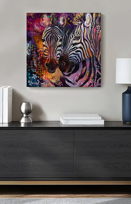 – Original Oil & Mixed Media Zebra Painting, Symbolic Art of Love and Freedom