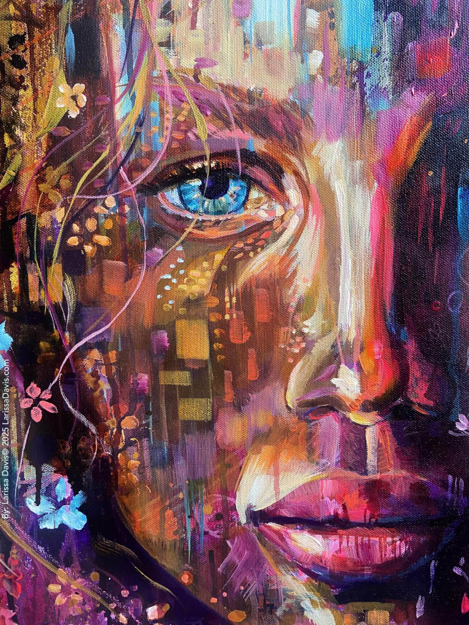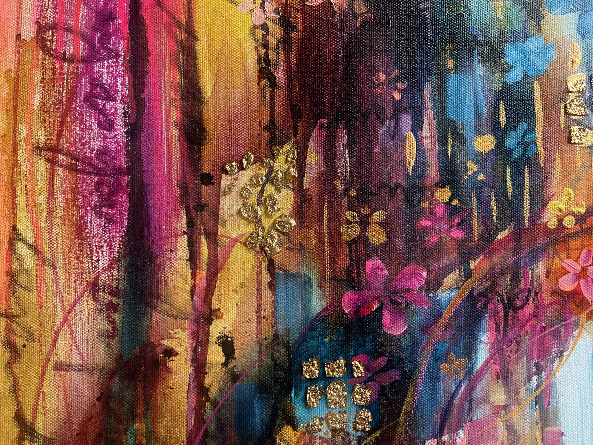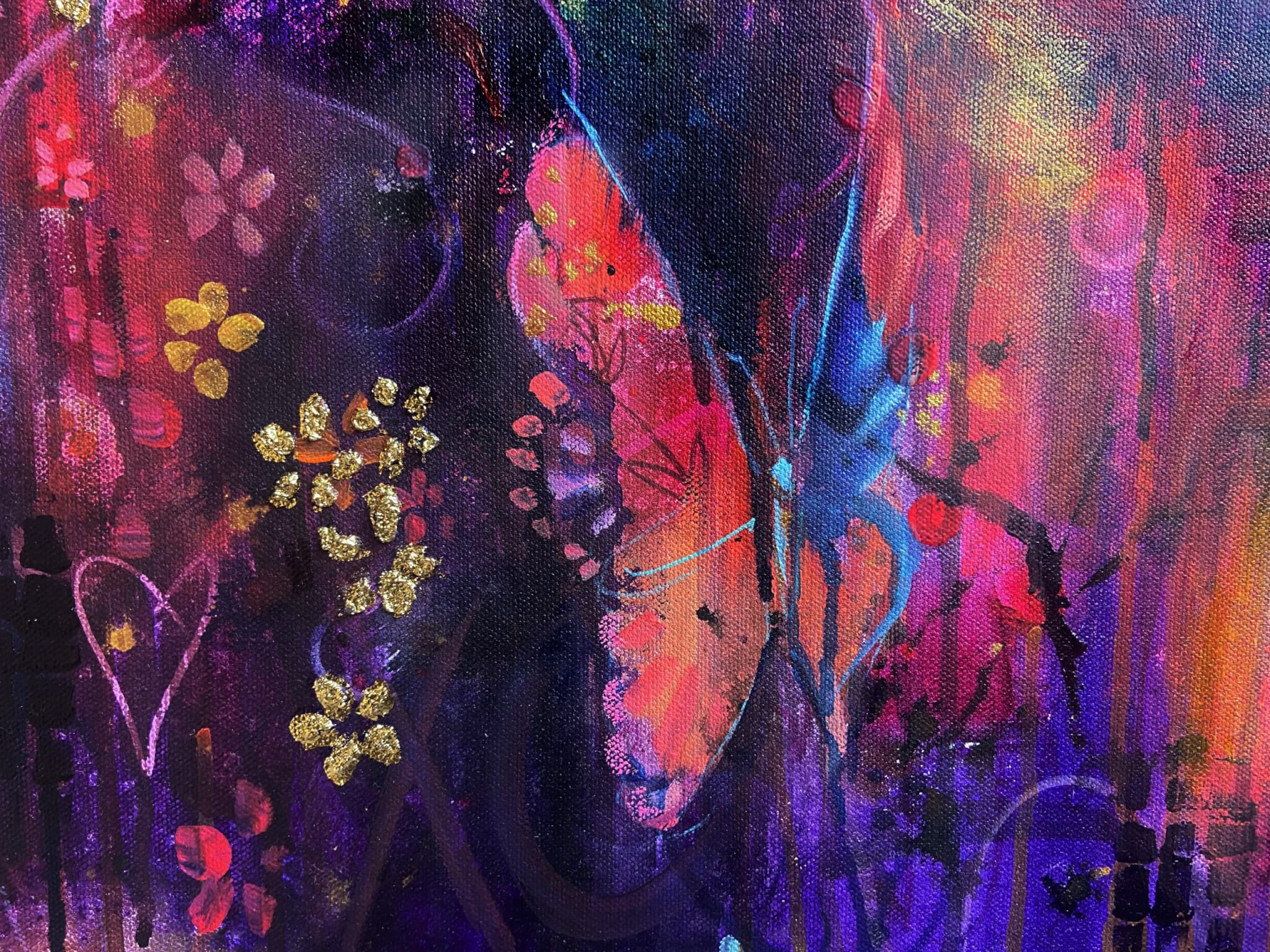 This invocation was written directly onto the canvas before painting began. Partially concealed beneath all the layers, it lives within the work as an energetic foundation holding its presence, intention, and frequency.