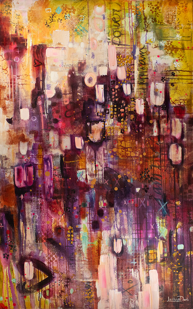 While painting this piece i had a breakthrough. i was loving it so much, and the thought of putting an image over it was tearing me apart… the breakthrough happened when i asked myself, what if this is enough? What if this wild abstract mess is perfect just as it is! And then that expanded out to me… what if i am enough? what if i am perfect just the way i am? This piece was instrumental in helping expose limiting beliefs around what something has to be to be considered art, and even what i thought i had to be to be accepted.